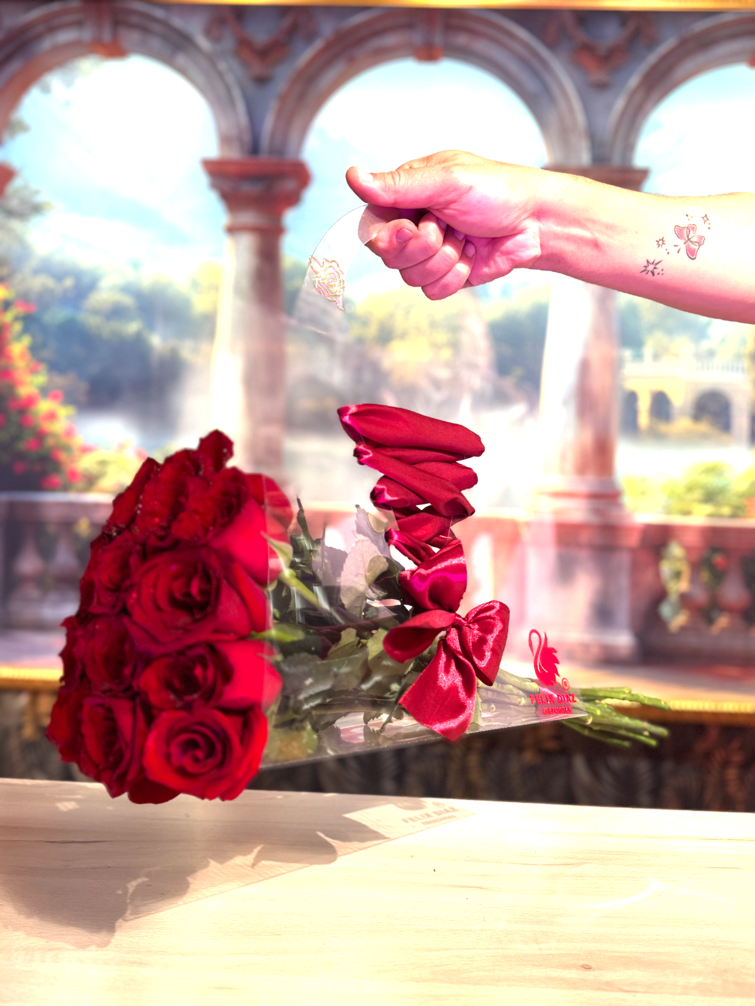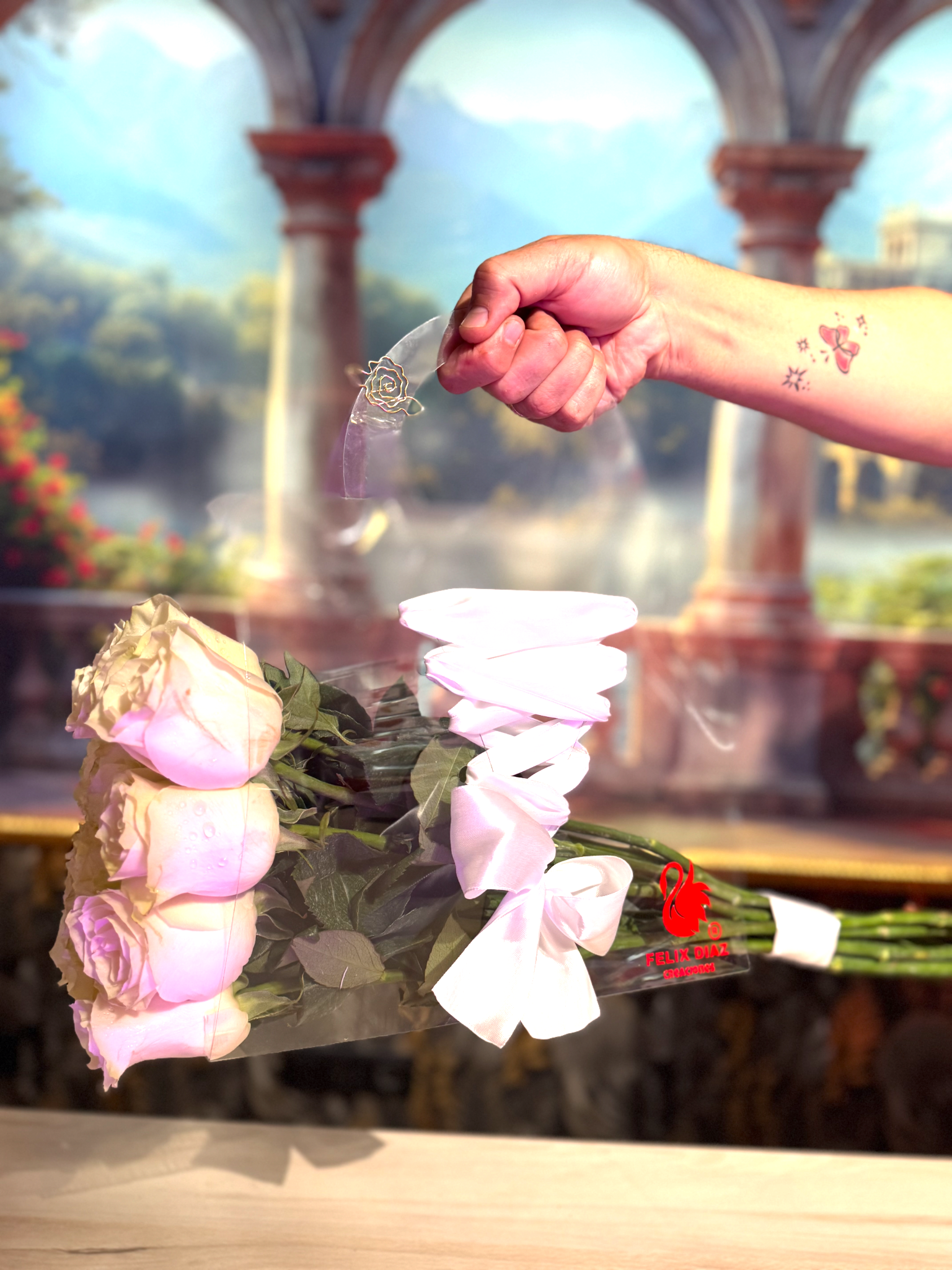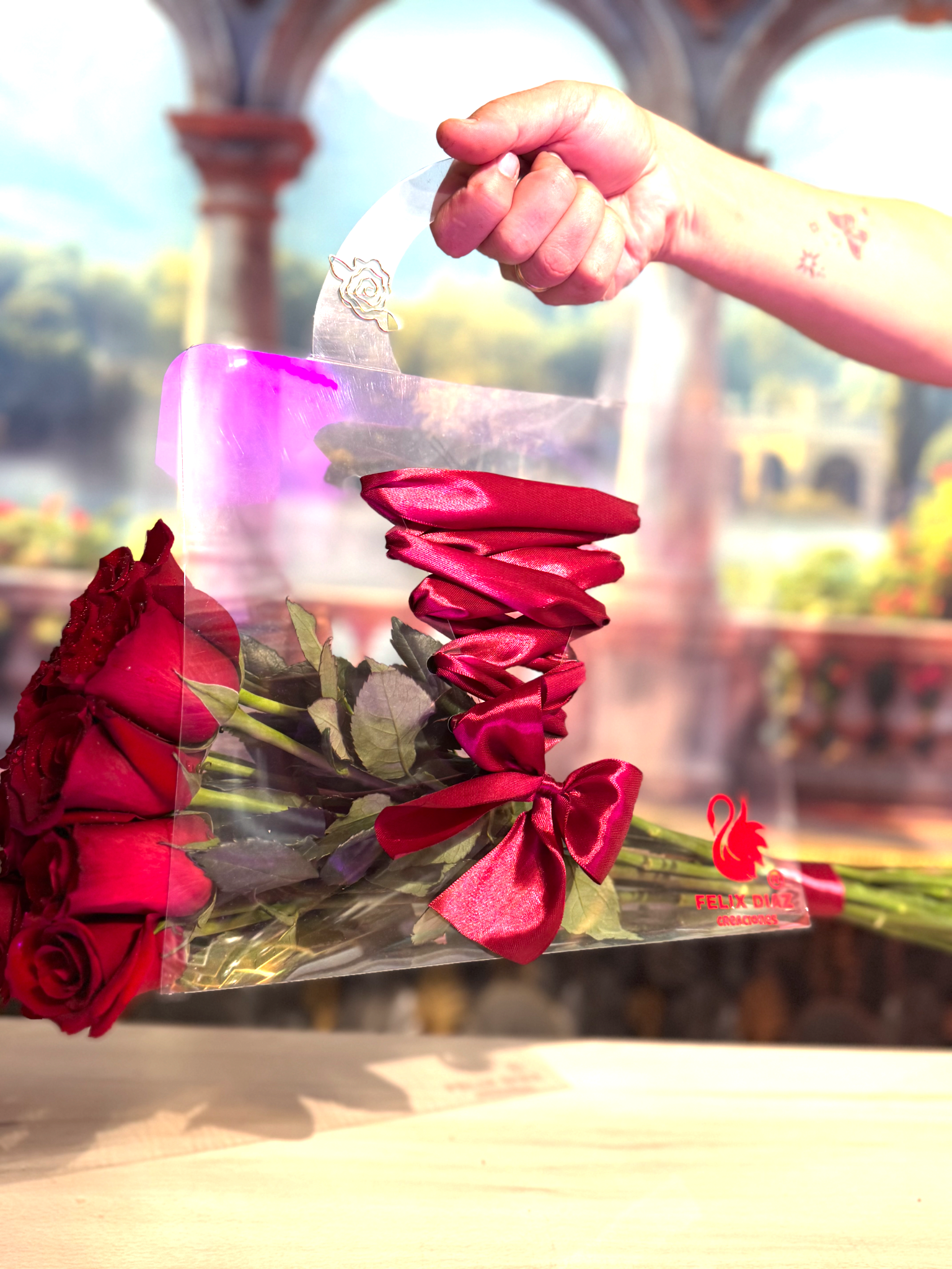 Bolso trasparente trenzado con rosas PREMIUM
