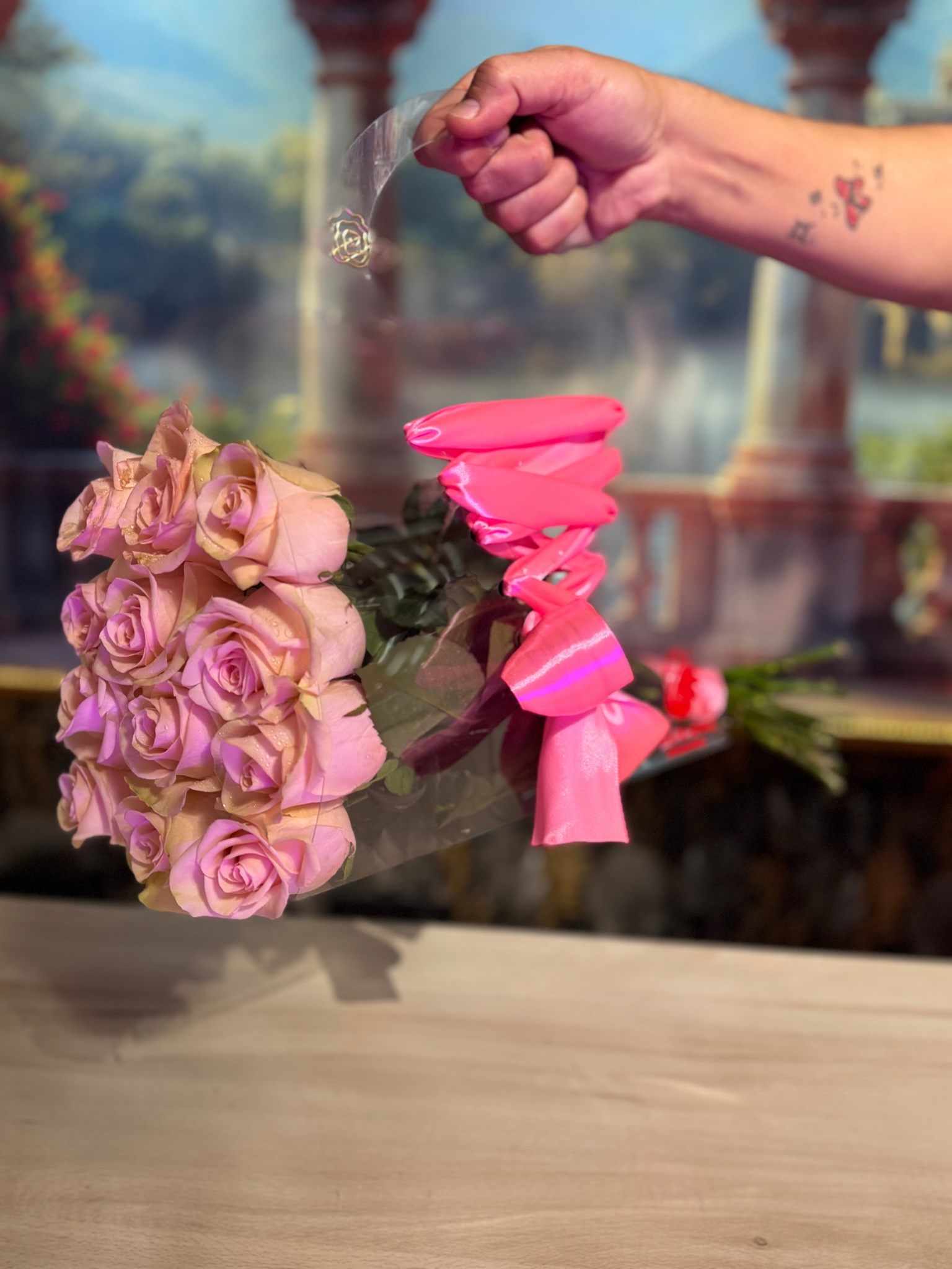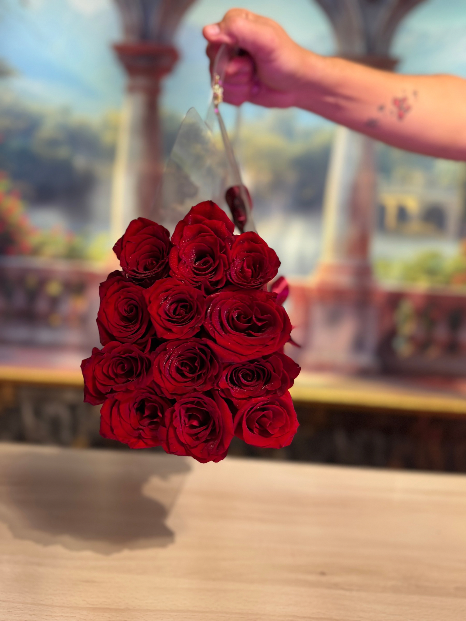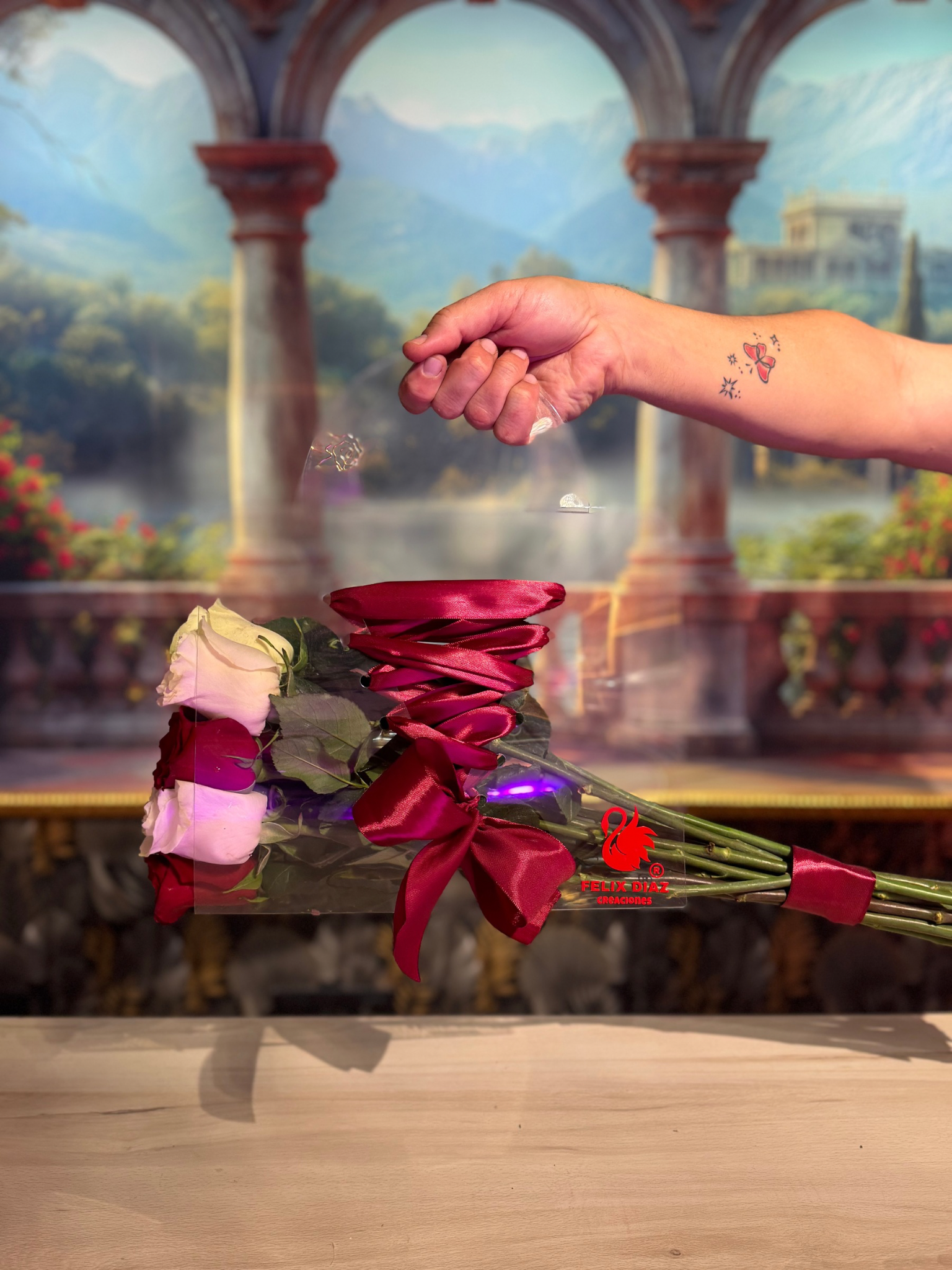 Bolso trasparente trenzado con rosas PREMIUM