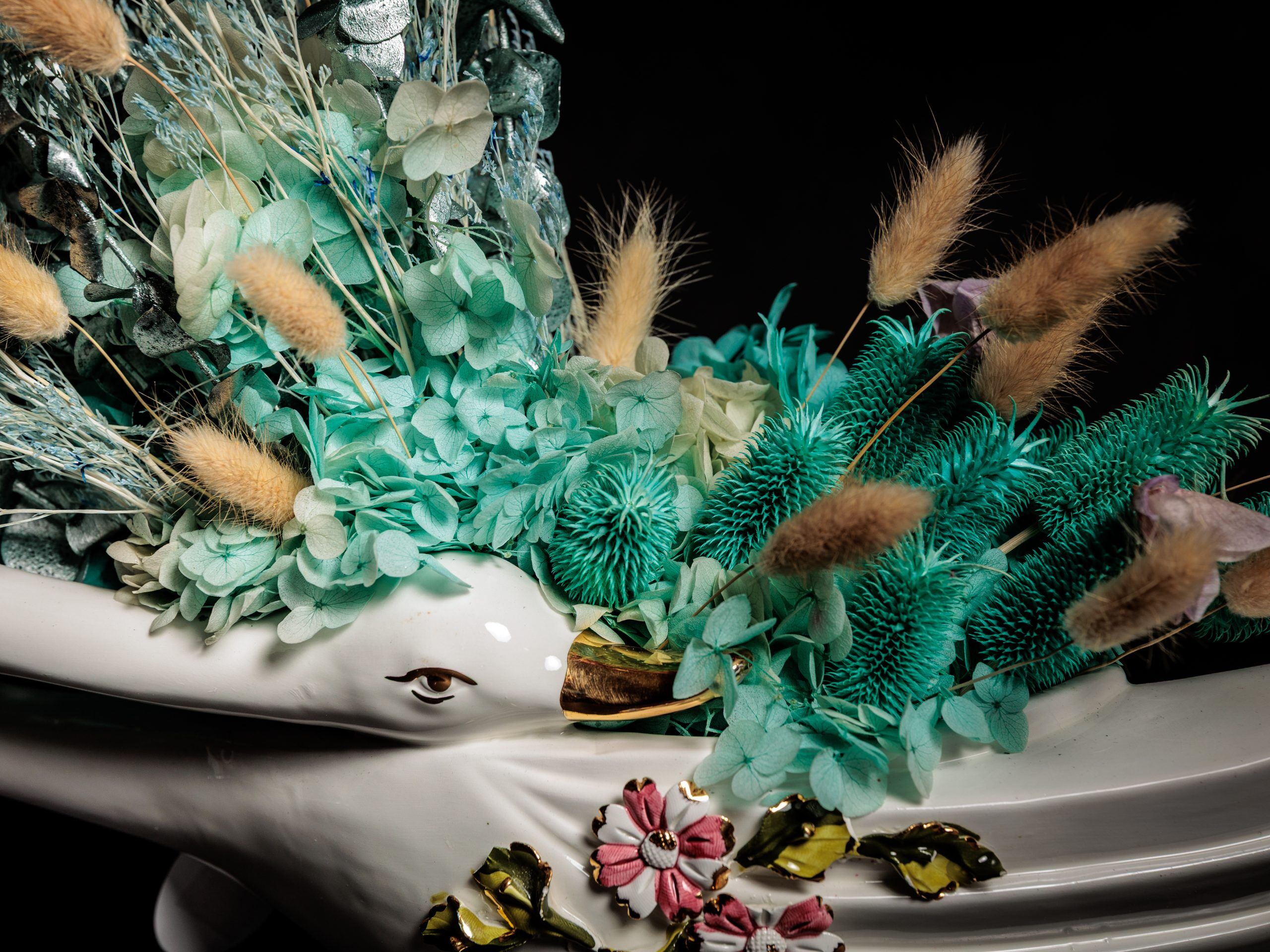 El contraste entre la pureza del cisne y la frescura vibrante de los tonos turquesa convierte esta pieza en un acento decorativo ideal para espacios delicados y contemporáneos, perfecto como centro de mesa, obsequio especial o detalle exclusivo para celebraciones elegantes.