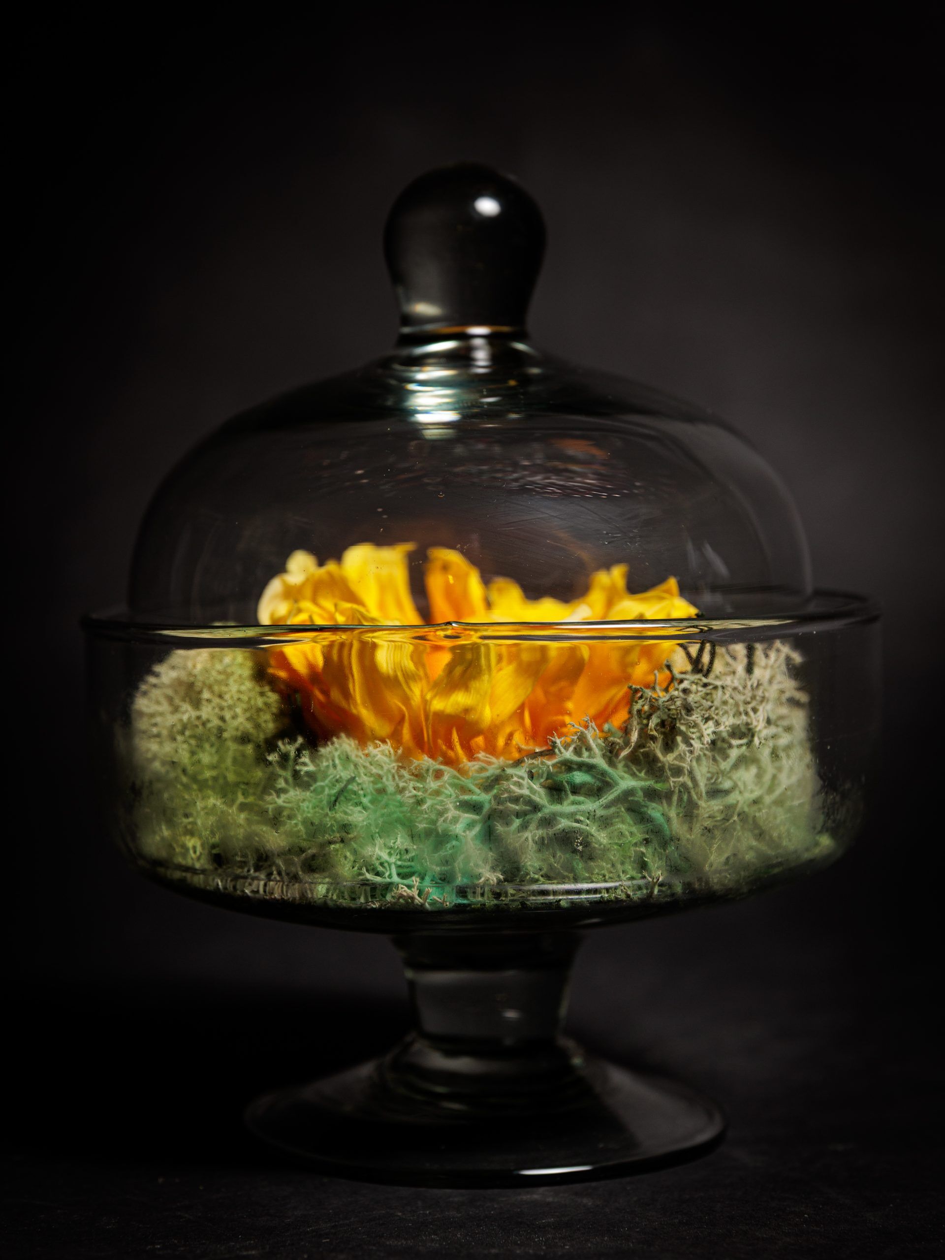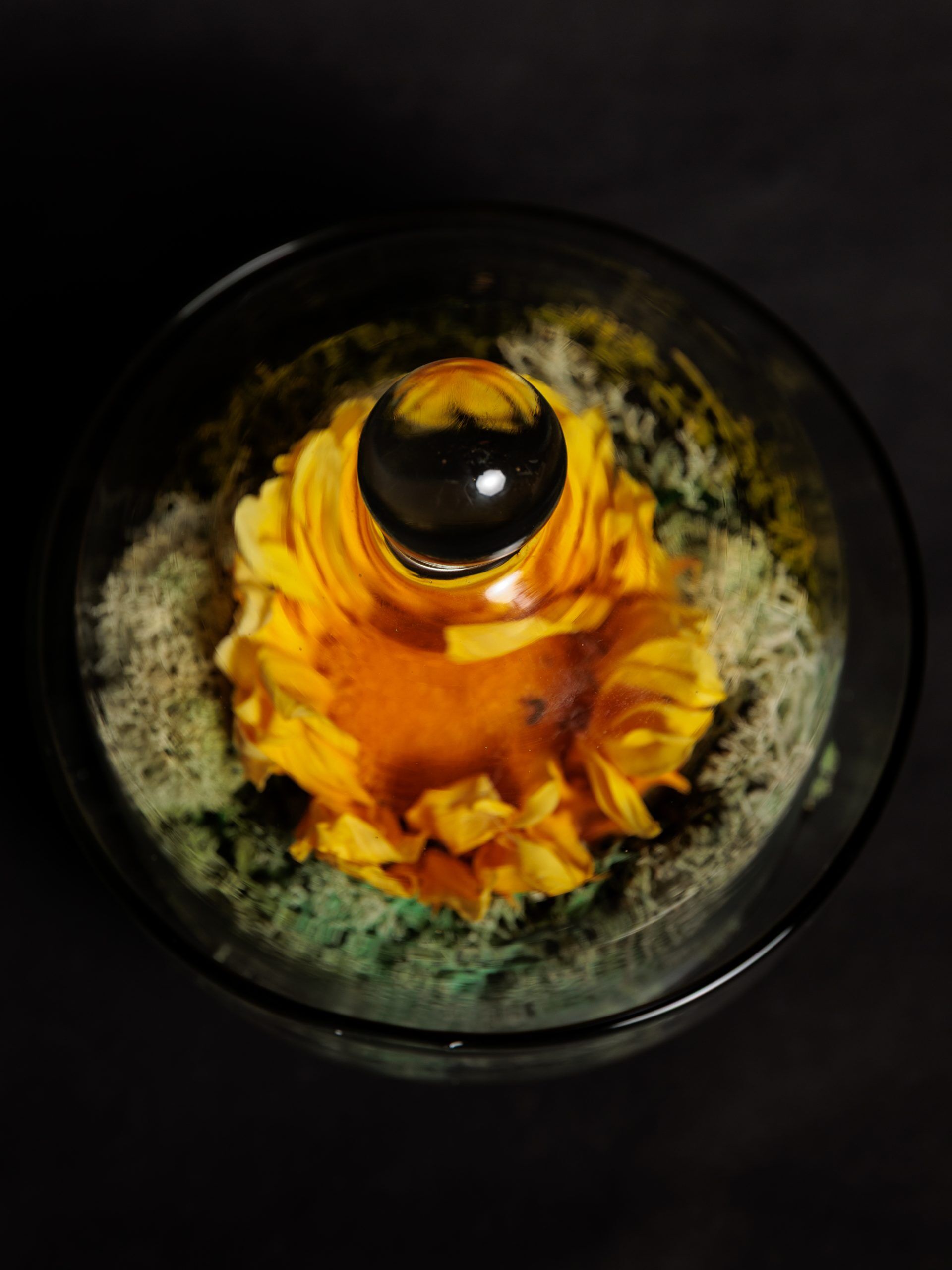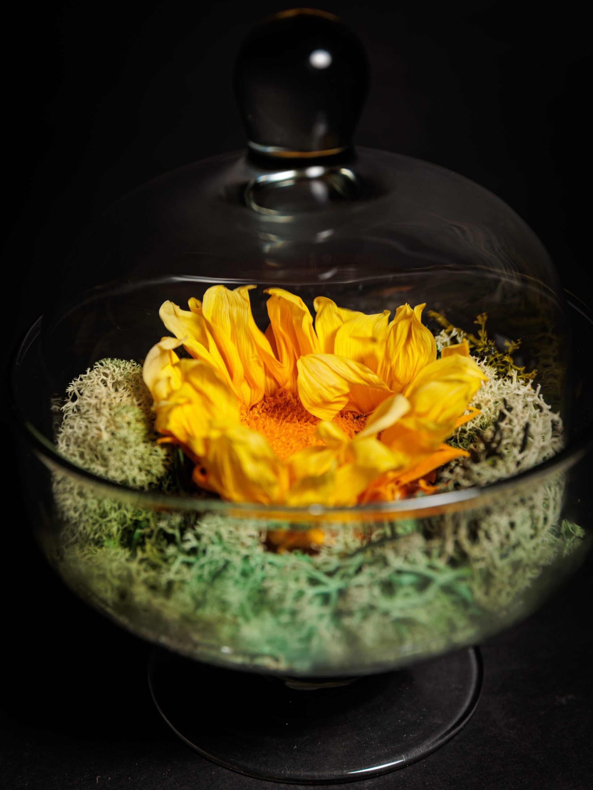 Un rayo de luz, bondad y carisma , quien la tiene se llena de energía, es por eso que esta cúpula de cristal abraza un girasol eterno . Inspirada en nuestra embajadora