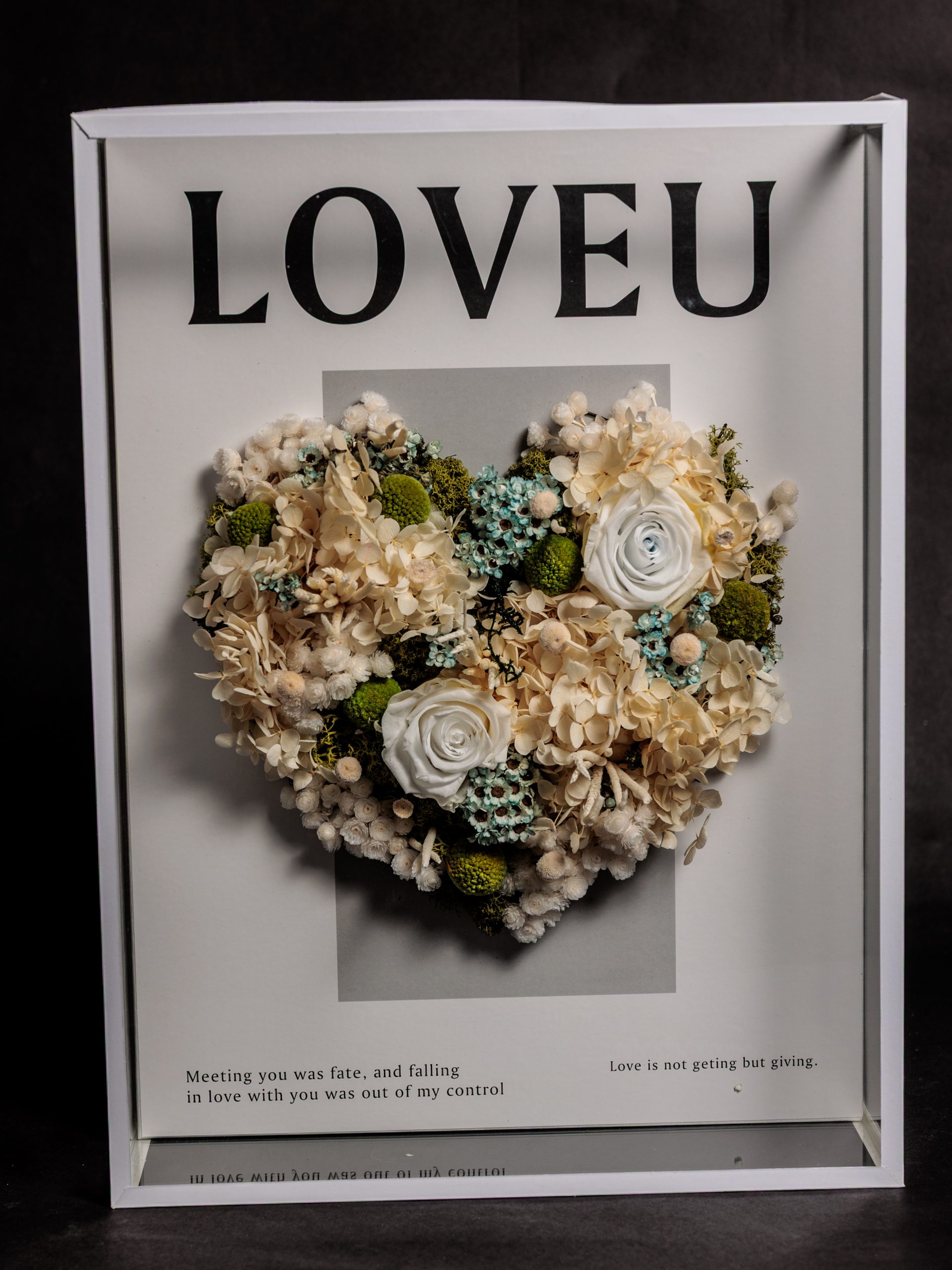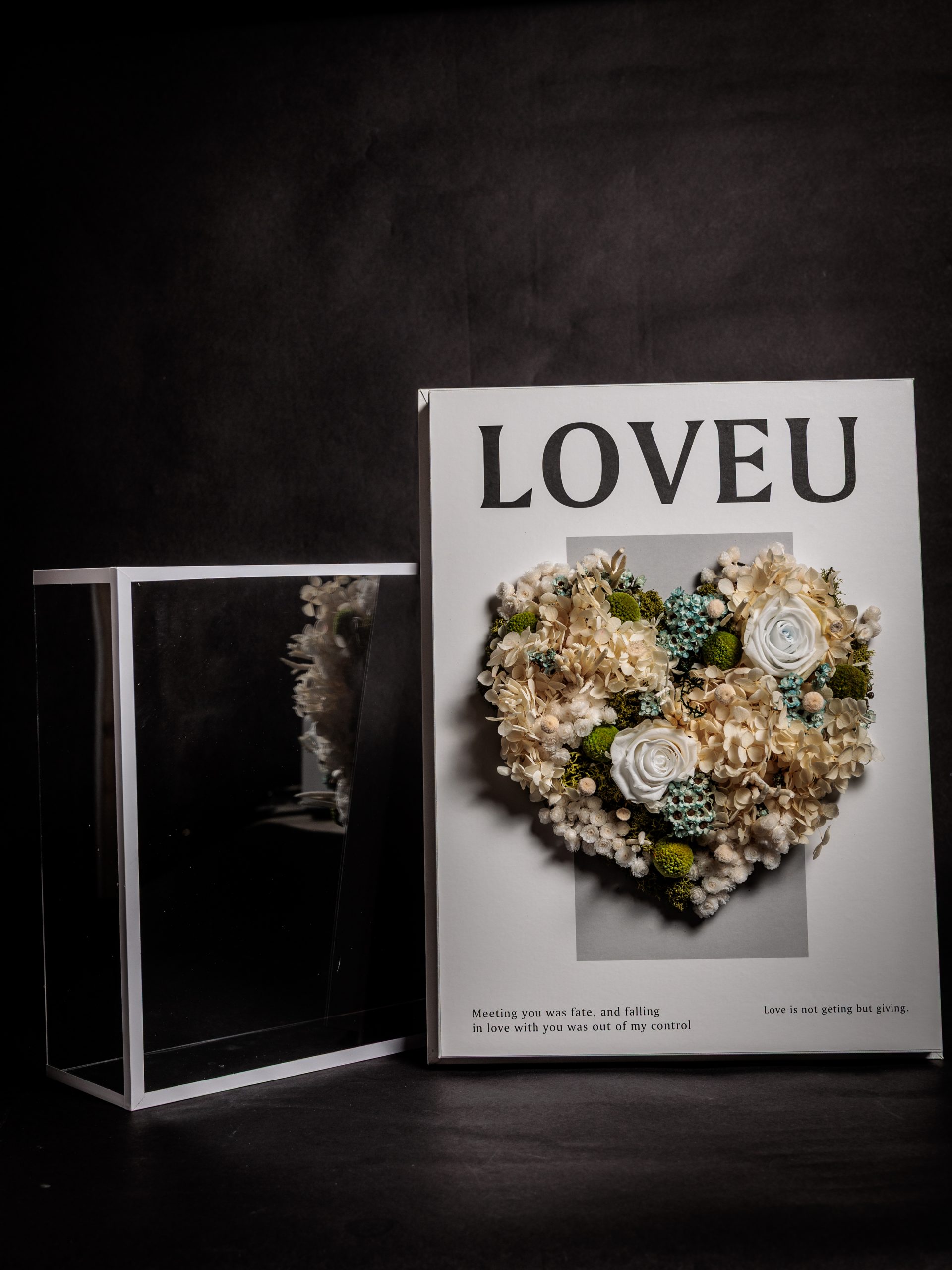 Box de metacrilato en acabado luxury con Corazon de flores preservadas