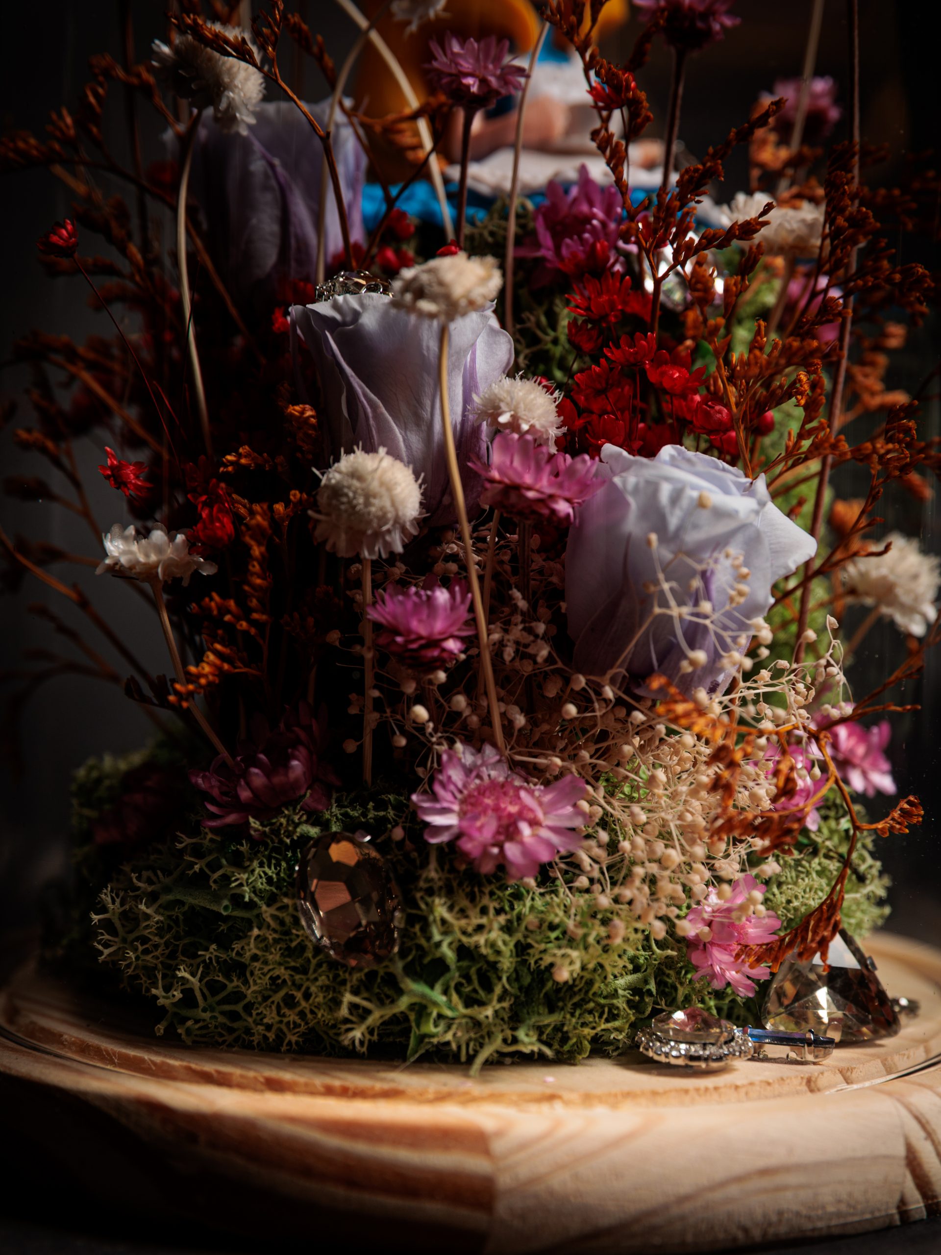 COMPOSICION DE FLORES PRESERVADAS EN CUPULA DE CRISTAL